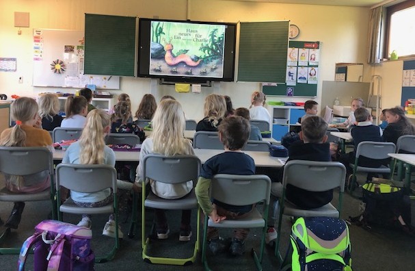 Mit großer Sorgfalt und sichtbarer Freude lasen die Erst- und Zweitklässlerinnen ihren jungen Gästen aus dem Buch „Ein Haus für Charlie“ vor. Die Geschichte handelt von einer kleinen Schnecke, die ihr Schneckenhaus verloren hat und sich auf die Suche nach einem neuen Zuhause macht. Gebannt lauschten die Vorschulkinder den Stimmen der Schulkinder und verfolgten gespannt, wie verschiedene Tiere aus dem Garten versuchen zu helfen – jedoch ohne Erfolg, denn das passende Schneckenhaus ist zunächst nicht dabei.